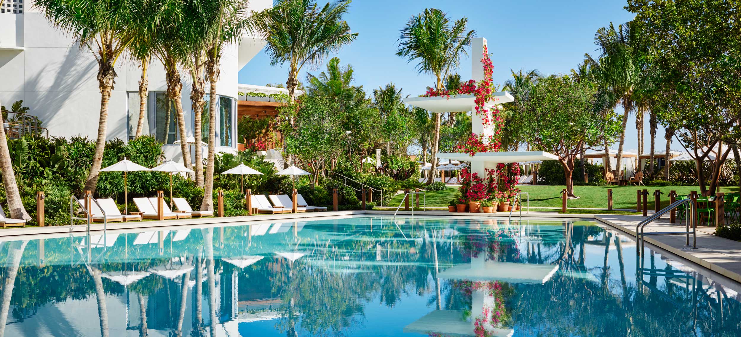 The Miami Beach EDITION ligger i det ”historiska hjärtat” av Miami, mellan South och North Beach på en privat egendom som sträcker sig från livliga Collins Avenue ned till stranden och Atlantens varma vatten. Det är en elegant designad resort som för tankarna tillbaka till Miami, Havanna och 1950-talets storhetstid. De underbara rummen, sviterna och bungalowerna är rymliga och ljusa med mjuka färger som teak och elfenben. Vackra textilier i både siden och ull. De flesta har direkt havsutsikt och privat terrass eller balkong. En del av sviter och bungalows har privat pool eller takterrass med pool. Det stora poolområdet heter Tropicana och är inspirerad av den legendariska nattklubben i Havanna med lounger i teak, privata cabanas och stora schäslonger. The Sandbox är en avskild vrå av poolen/stranden med hängmattor och filmduk utomhus. Spaet erbjuder allt från Hammam till detox och infraröd bastu. Restaurangen Matador Room bjuder på moderna tolkningar av det latinska köket signerade Chef Jean Georges-Vongerichten. Säsongsbetonade rätter med spanska, västindiska och sydamerikanska smaker. För de som vill fortsätta natten finns BASEMENT som bjuder på bowling, skridskor och en nattklubb inspirerad av Ian Schragers mytomspunna Studio 54.