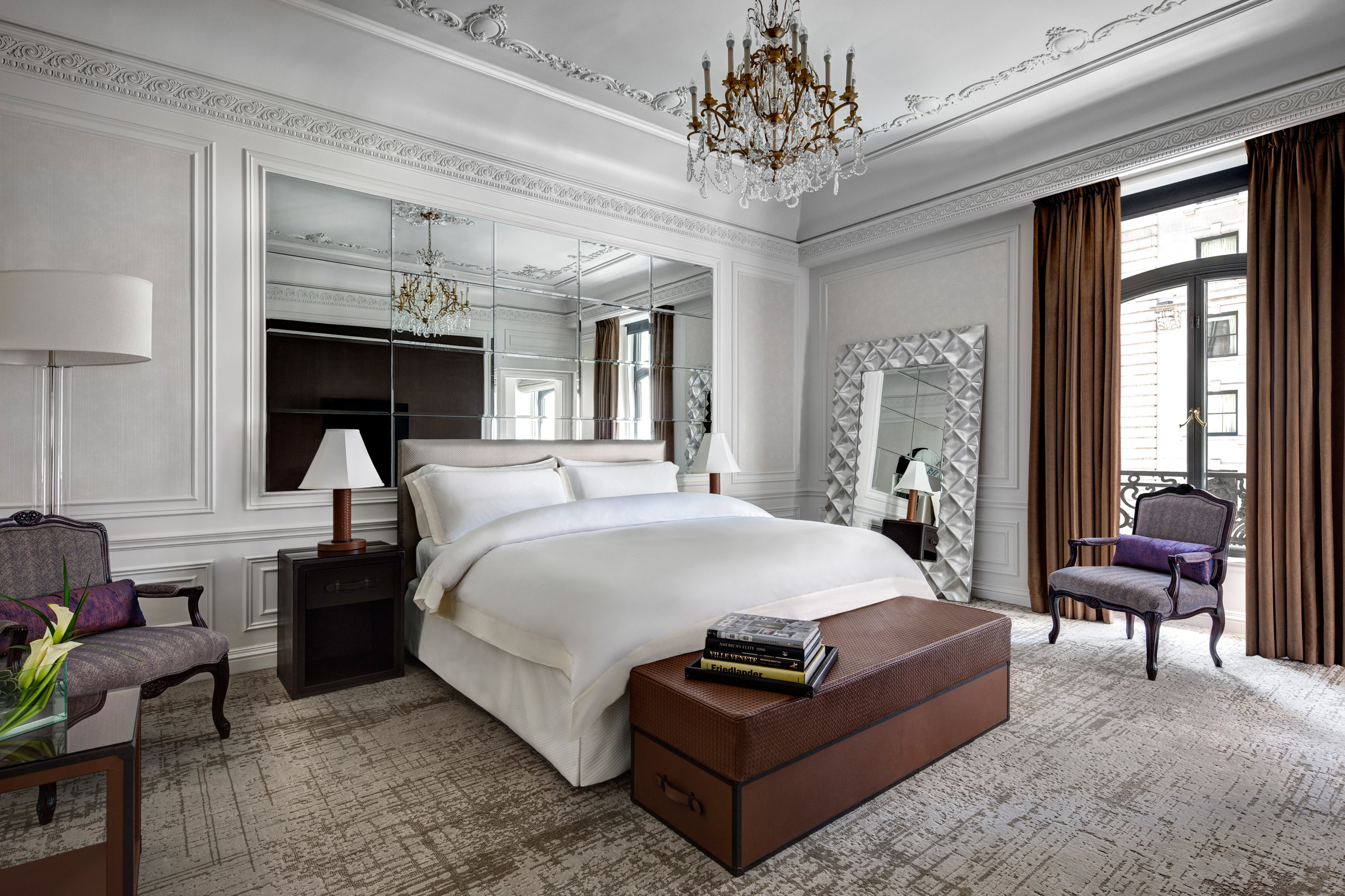 The St. Regis New York är ett hotell som andas klassisk hotellhistoria och ligger i hjärtat av Manhattans konst- och teaterdistrikt. Hotellets signum är den oklanderliga servicen som överträffar alla förväntningar. Den nyrenoverade hotellet går i elegant edvardiansk stil där rum och sviters silkestapeter och äkta antikviteter uppdaterats med modern design och teknik som står sig vackert mot måttbeställda möbler, handsnidade lister och badrum i marmor. Hotellet har ett vackert spa och en restaurang i regi mästerkocken Alain Ducasse. Som på alla St Regis hotell lever andan från hotelldrottningen Lady Constance Astor kvar. Hennes anvisningar om nyskurna blommor, afternoon tea, brittiska butlers och varm måltid vid midnatt efterföljs fortfarande.