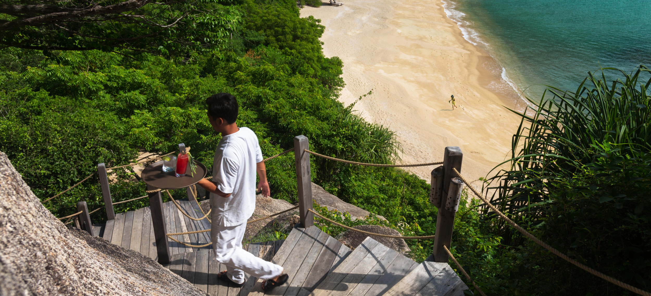 Six Senses is devoted to sustainability in its hotels, resorts, and spas. A Sustainability Fund at every resort uses portions of revenue to support local charities and community projects. No plastic bottles are used, and all water is bottled onsite. The hotel is devoted to their Coral Project, protecting a nearby reef and providing education on marine life, while guests experience fantastic swimming and snorkeling. Employment opportunities are offered first to those living in the area, and several programs provide purified water to the community, with more to come via new stainless steel water tanks.