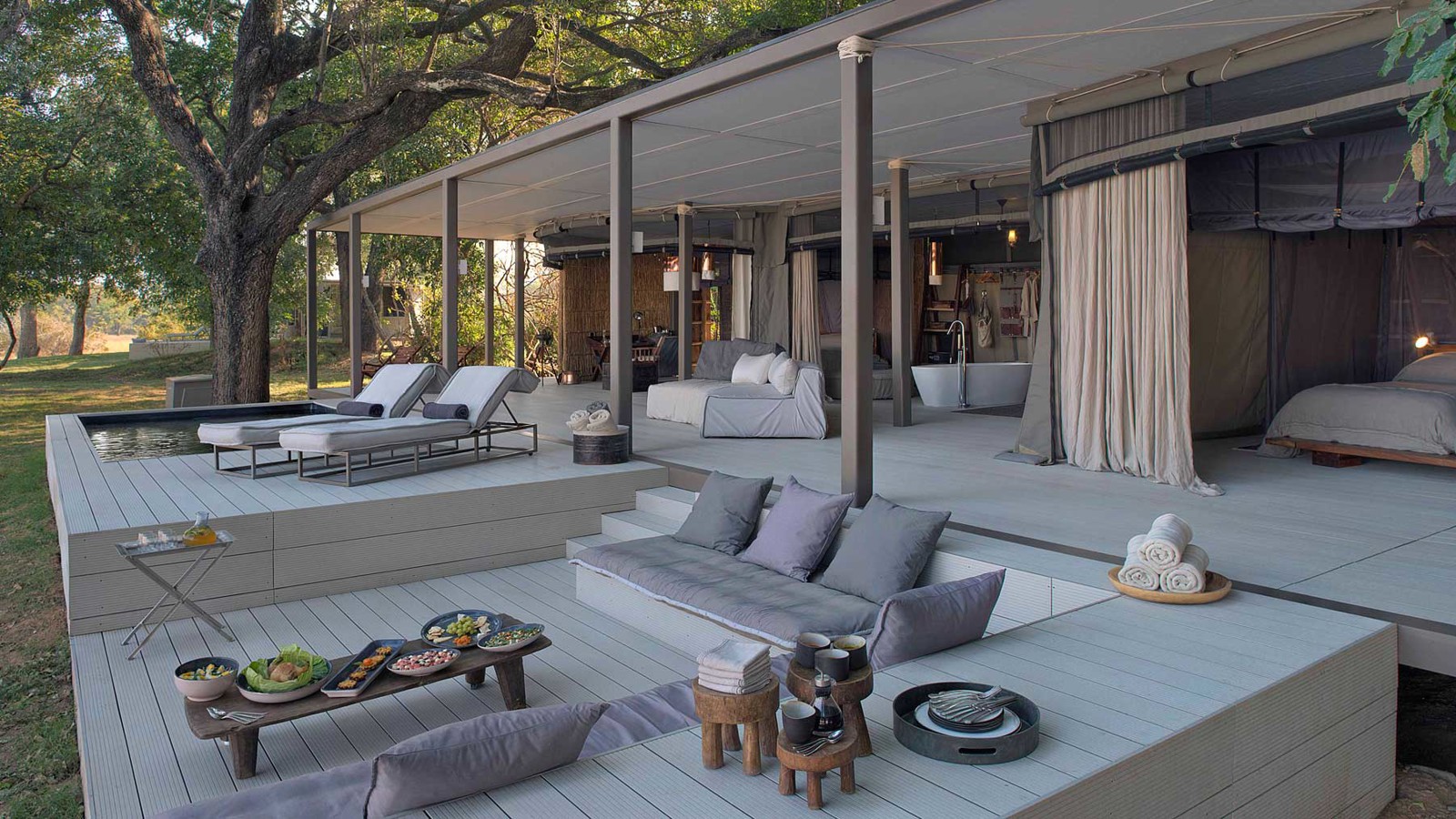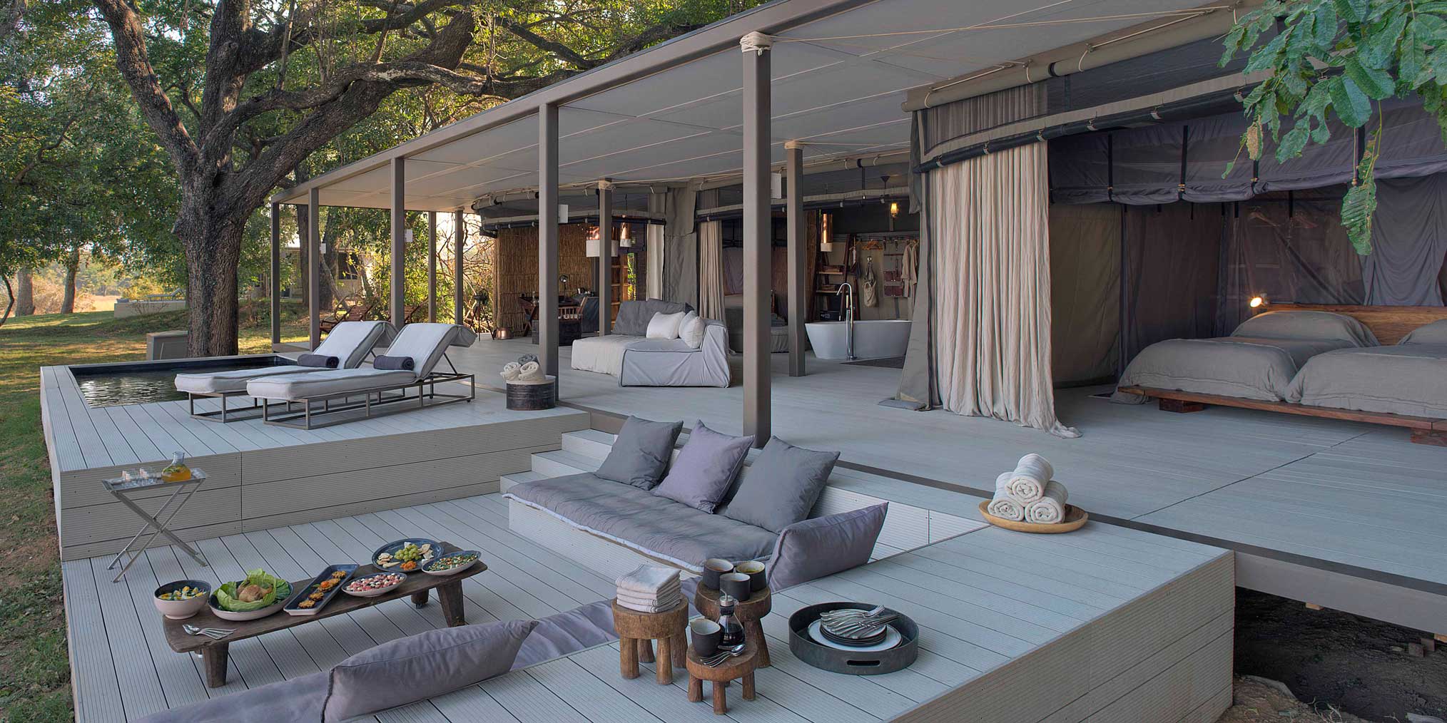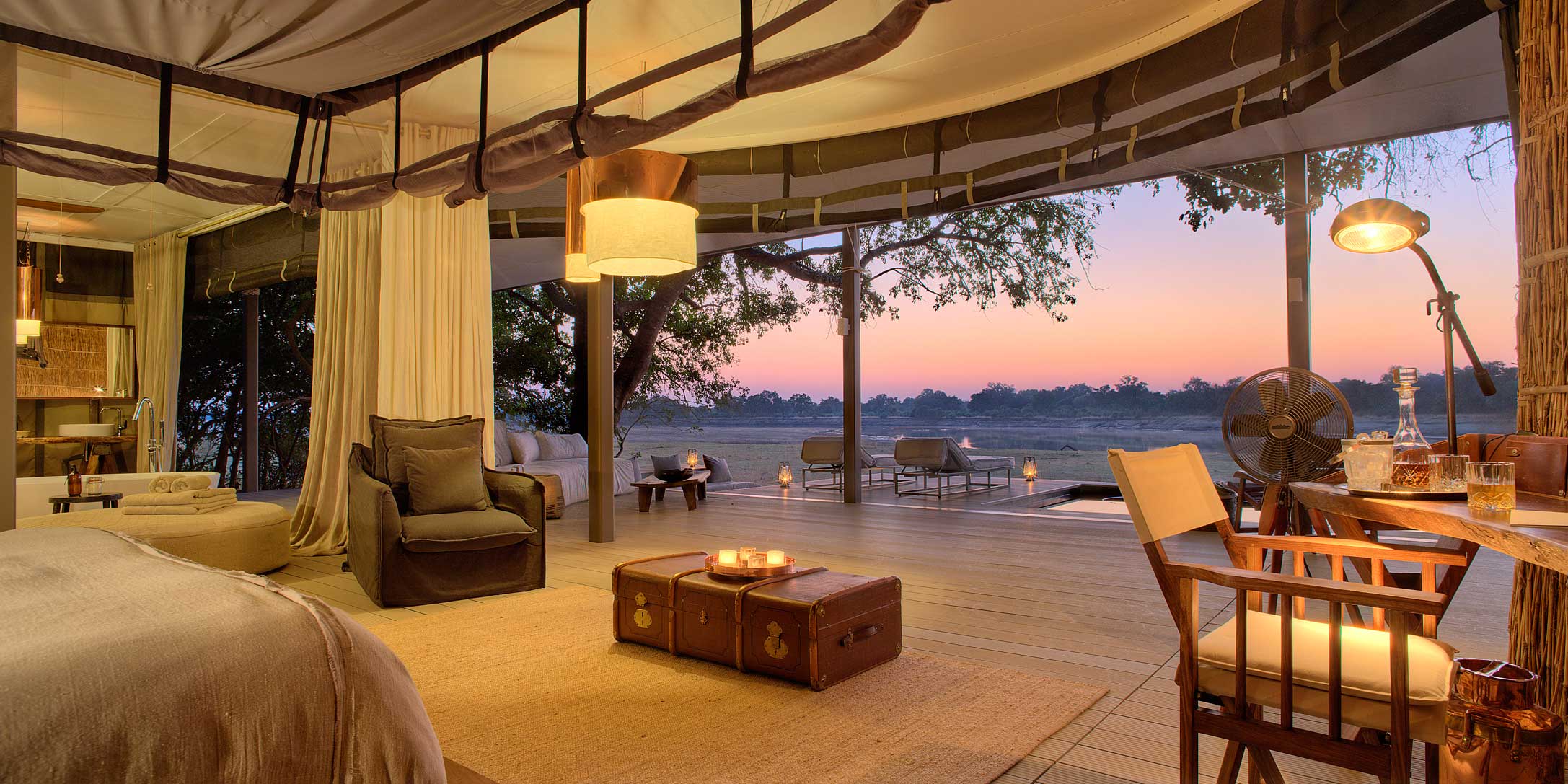 Chinzombo ligger vid en avsides krök längs Luangwa River, en av Zambias mest viltrika platser. Platsen är noggrant utvald och campens sex privata villor ligger i skuggan av majestätiskt magnifika msikziträd och är ritade av stjärnarkitekterna Silvio Rech och Lesley Carstens. De har tillfört en modern elegans och enkelhet sällan, om ens skådad, på en safaricamp. Den öppna planlösningen i villorna är genomtänkt in i minsta detalj och det är som om naturen utanför är en del av boendet. Allt är byggt i naturmaterial som timmer, vass och läder, och inredningen är minimal med linne, trä, koppar och handgjort porslin. Runt villan med vardagsrum, luftkonditionerat sovrum och lyxiga badrum löper ett stort trädäck med privat pool och panorama över floden. En av de sex villorna är en familjesvit med två sovrum och på Chinzombo är barn i alla åldrar välkomna.
