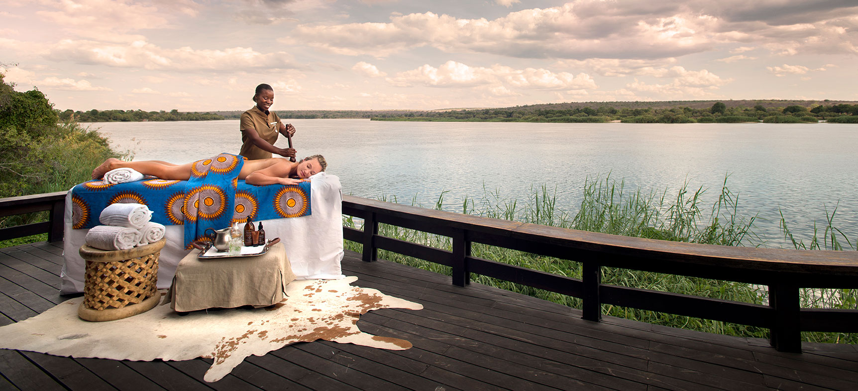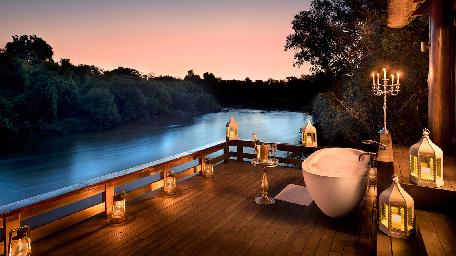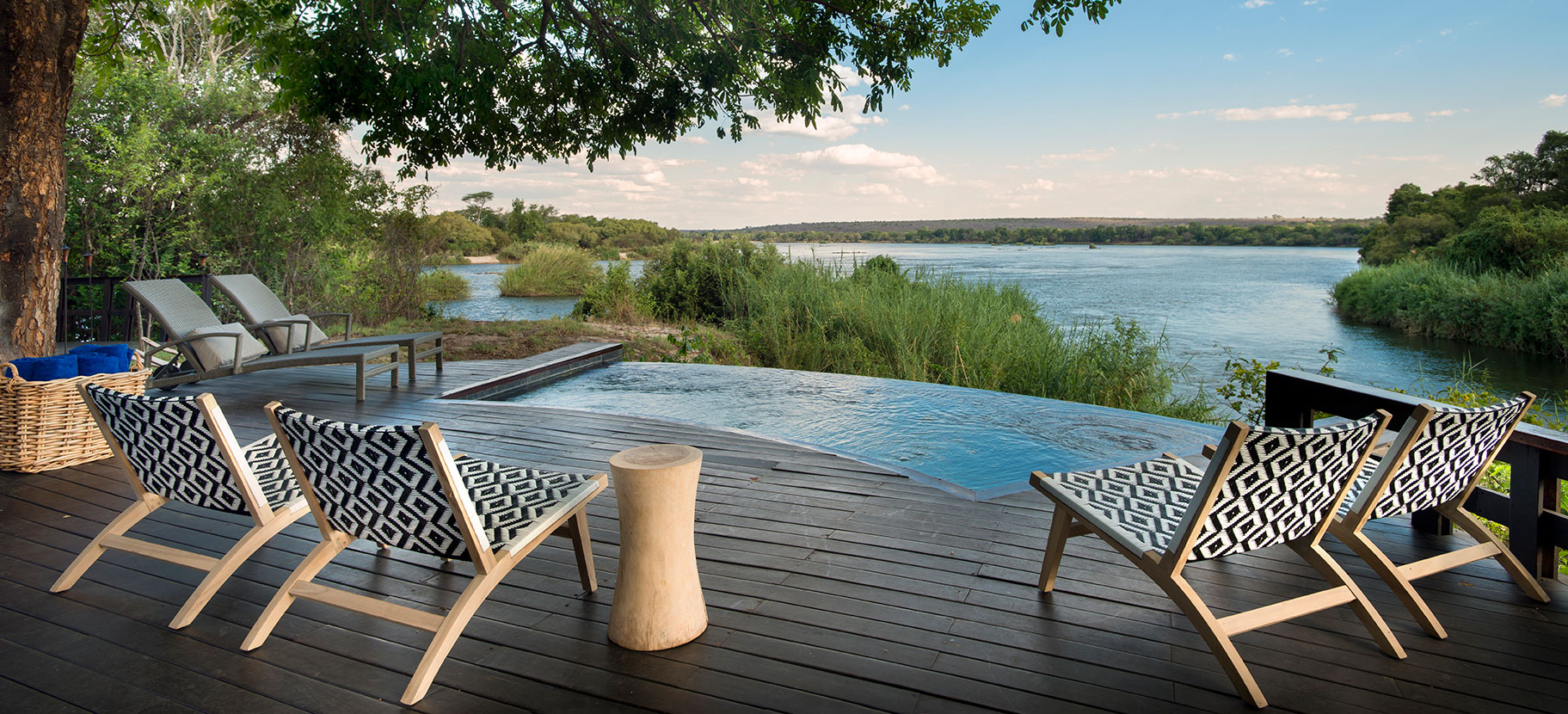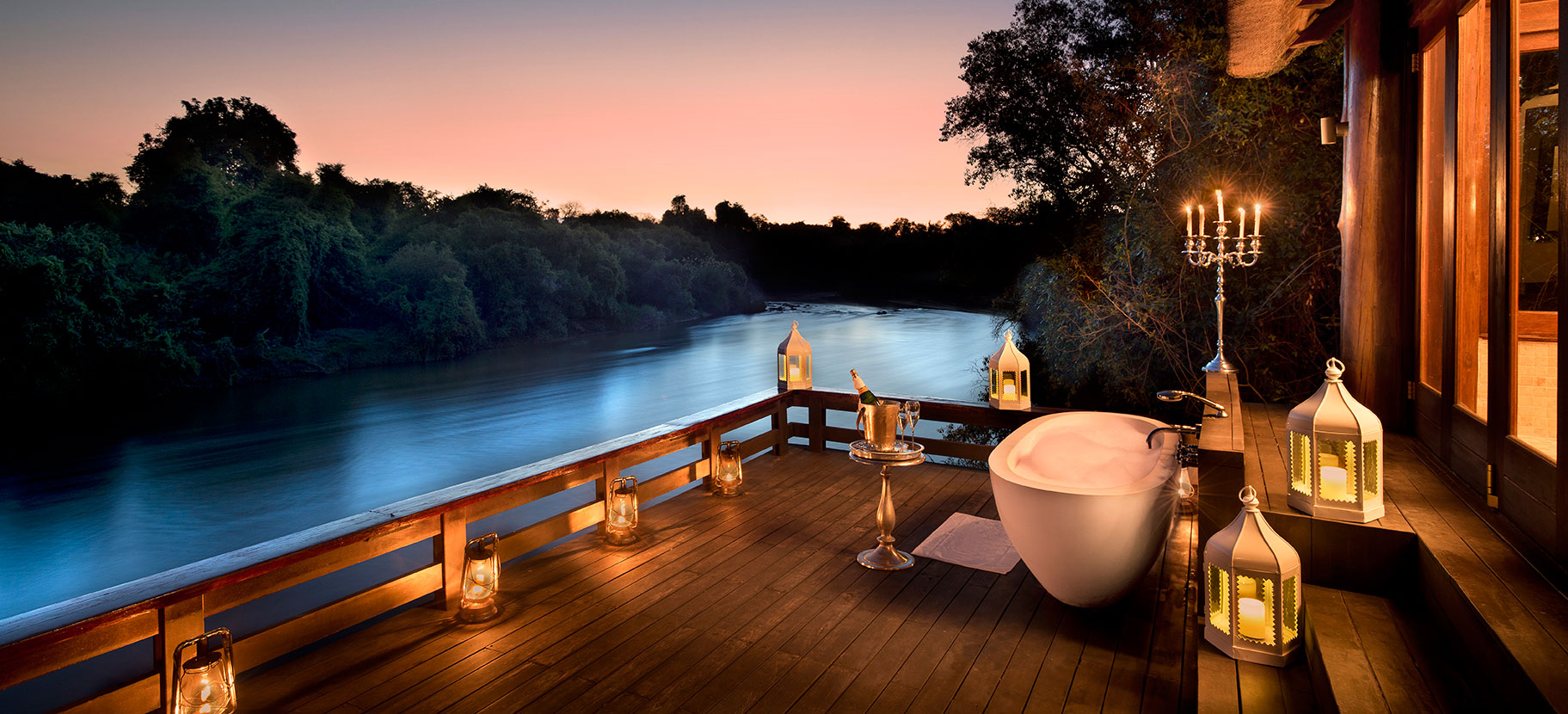 Vid kanten av den mäktiga Zambezifloden, strax uppströms från Viktoriafallen, ligger ett litet paradis på jorden - Royal Chundu. Två magnifika lodger ligger i detta otämjda hörn av landet, långt från civilisation och vardag. The River Lodge ligger på flodstranden med 15 kilometer privata vattenvägar runt omkring. Island Lodge ligger på avsides belägna Katambora Island. Båda lodgerna består av rymliga sviter med en inredning i kolonialstil som minner om det tidiga upptäcktresandets glansperiod. Efter de dagliga safrariturerna går det utmärkt att koppla av med gudomliga spabehandlingar med afrikanska produkter och sedan njuta av det zambesiska köket eftersom Royal Chundu är en självklar medlem av ansedda Relais&Chateaux. Middagarna serveras gärna under stjärnorna, en kort båttur bort på en öde ö. River Lodges sviter har alla en öppen planlösning som leder ut på ett privat däck med utsikt över floden och savannen i Matetsi Game Reserve. Island Lodge ligger omgiven av baobabträd och tvåtusenåriga Jackalberry träd. De fyra villorna har en intim boma för utomhusmiddagar, en gemensam matsal och infinitypool. Villornas färger går i koboltblått med naturfärger i olika bruna nyanser.
