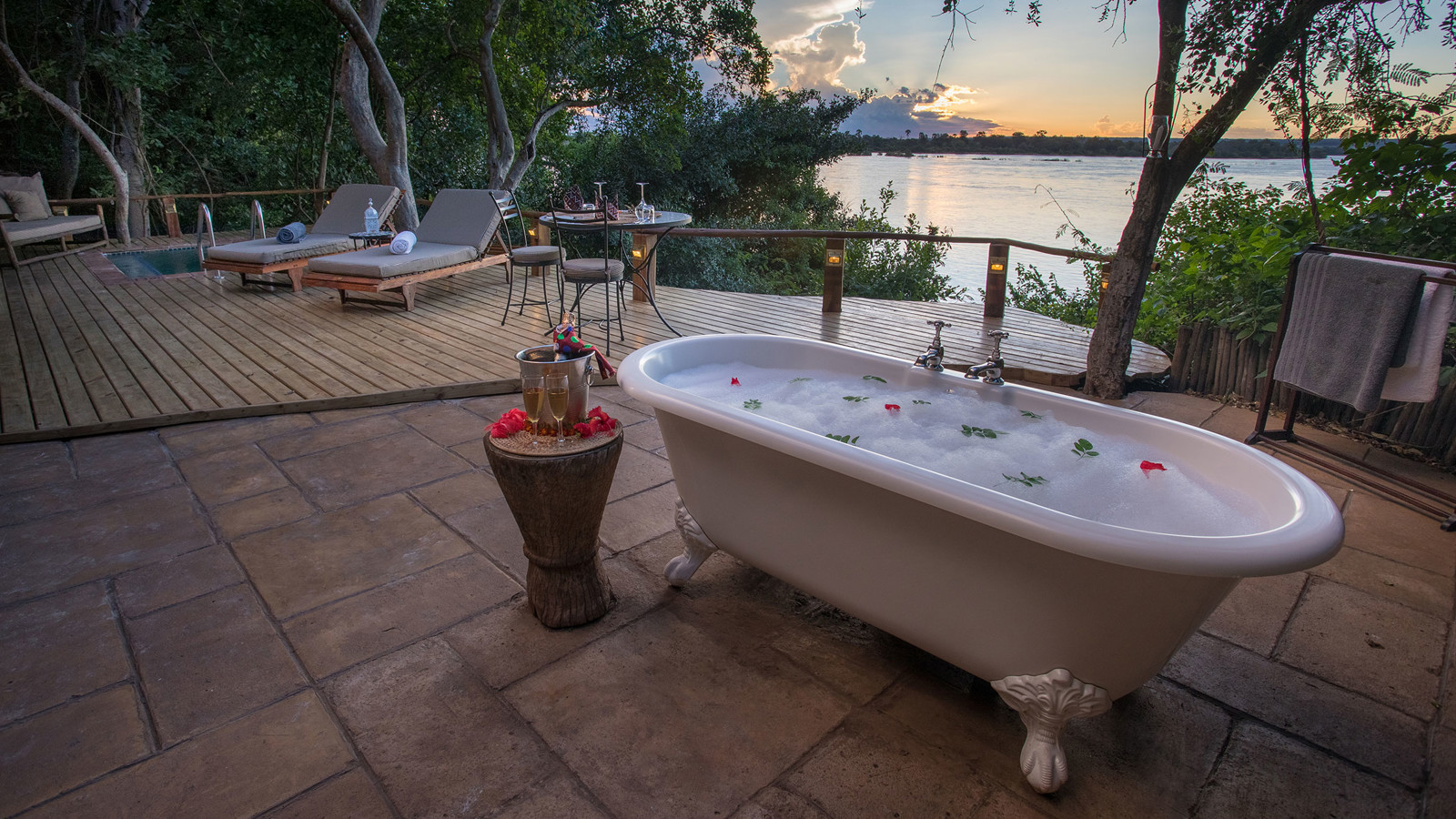 Tongabezi Lodge är ett romantiskt gömställe på Zambeziflodens strand, bara några kilometer norr om de legendariska Viktoriafallen, Afrikas smekmånadsdestination nummer ett. Tongabezi är helt privatägd, här är service en del av upplevelsen och varje villa har en egen butler som under hela vistelsen även agerar som privat concierge. Villorna är helt olika varandra och går var och en i exklusiv egen stil men den gemensamma nämnaren är stora, öppna terrasser och svepande utsikt över Zambezi. Inredning och design andas extravagans och är inspirerade, och hämtade, från hela Afrika. Tongabezis verkliga skönhet ligger i den ständigt kärleksfulla stämning som gjort denna resort till en given favorit bland såväl bröllopspar och smekmånadsfirare som hos inspirerade safariresenärer med romantik i sinnet.