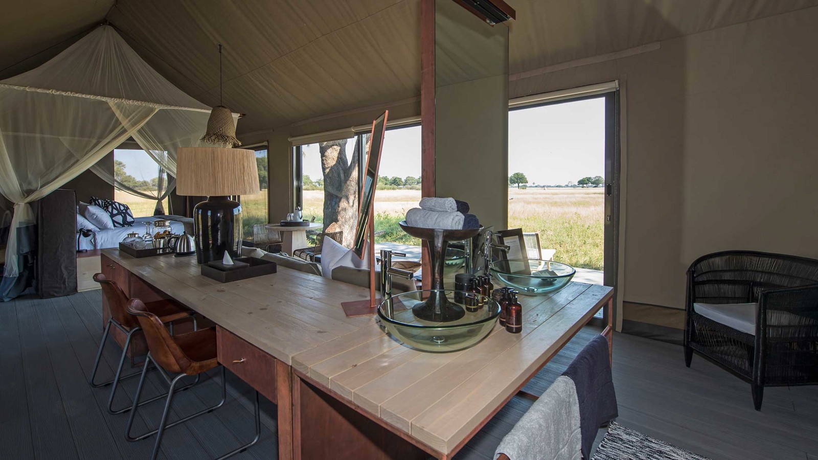 Nationalparken Hwange är stor som Belgien och har en av safarivärldens högsta koncentrationer av stora djur. Linkwasha Camp ligger i en privat koncession i parkens sydöstra hörn nära Ngamo Plains, en mötesplats för många av djuren. Från hjordar av elefanter till bufflar, zebror och lejon och leoparder på jakt. Dessa kommer man nära tillsammans med Afrikas bäst utbildade safariguider som varje dag leder två safariutflykter. Safarin sker i öppna Land Rovers, men även till fots genom bushen, och spännande nattsafaris där du får chansen att se nattaktiva djur som leopard, fläckig hyena, piggsvin och honungsgrävling. Linkwasha Camp andas verkligen essensen av klassisk safari med kanvas och utsikt mot ett vattenhål. De åtta tältsviterna är rymliga och kan öppnas upp mot privata trädäck. De ligger runt ett loungeområde med pool och en vinterlounge med ett komplett bibliotek. Ofta serveras middagarna direkt på de stora däcken samtidigt som viltet vandrar förbi strax nedanför på väg till vattenhålet för en egen sundowner. Även vid frukost är det rusning, eftersom den afrikanska buffeln är rätt rastlös inte riktigt sett storheten med kösystem.