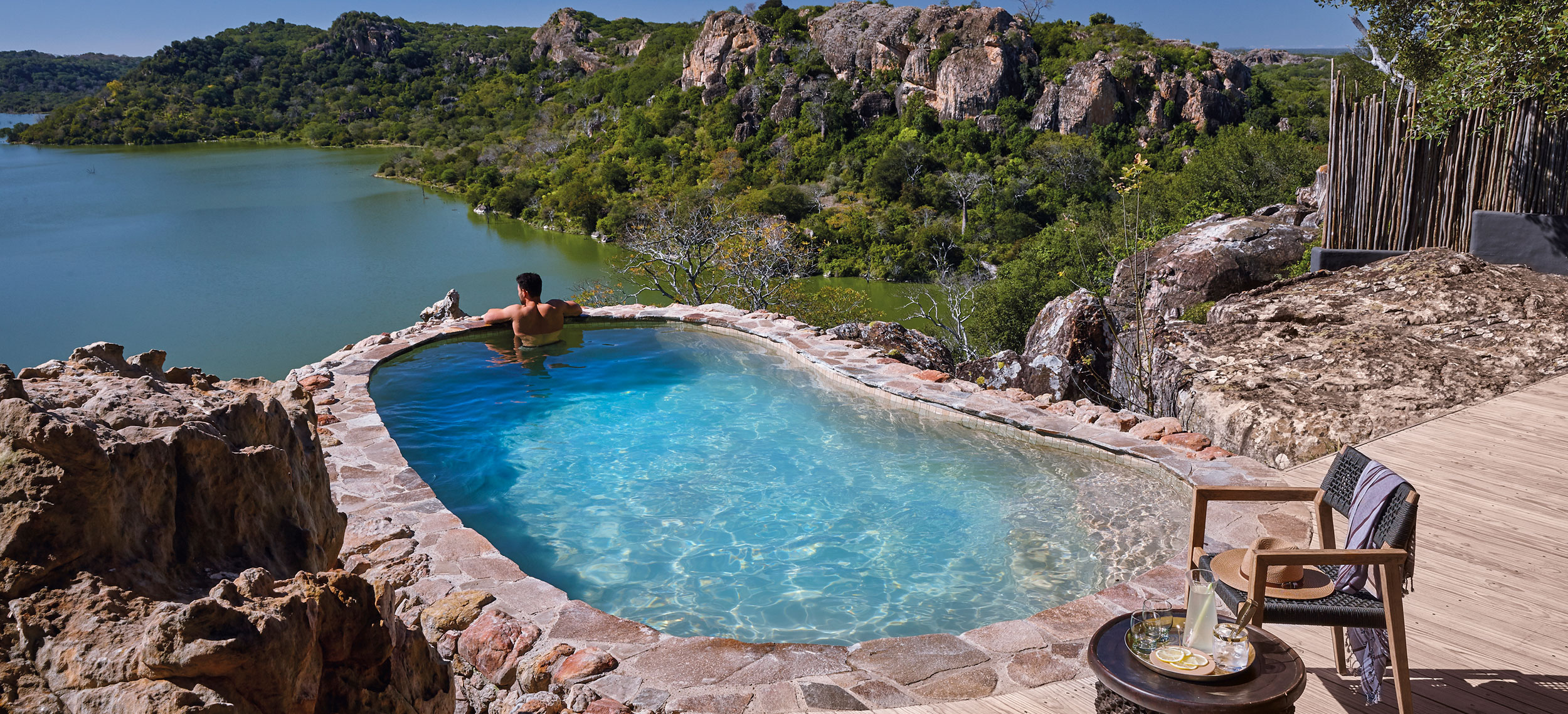 Singita Pamushana Lodge är gömd under svalkande trädkronor precis intill sjön Malilangwe i sydöstra Zimbabwe. Det här är den svarta noshörningens marker. Lodgen består av sex lyxiga sviter varav en svit med fem sovrum och därför perfekt för större familjer och sällskap. Designen är inspirerad av den naturliga miljön med trä och sten. Alla sviter har privat pool, dubbelsidig öppen spis och badrum med både inomhus- och utomhusdusch. På de stora trädäcken står tubkikare från Swarowski. Safariturerna görs med välutbildade rangers i öppna Land Cruisers två gånger om dagen, eller äventyrligt till fots i bushen. Campens utsökta måltider kan dukas upp i den öppna matplatsen i teak, på den privata verandan eller under en akacia i närheten. Singita Pamushana Lodges välkända vinkällare innehåller prestigeviner från hela världen.